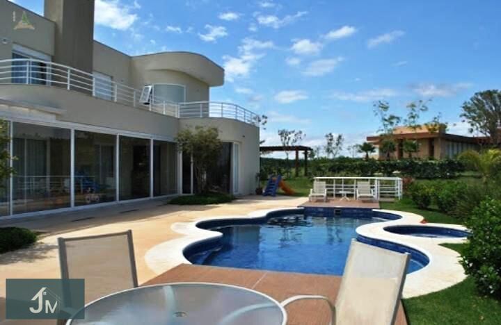 Essa linda casa possui 6 suítes todas com closets (uma delas térrea) sendo a máster com 2 closets walk in, sapateira, banhos Sr. (com ofuro) E Sra. (com banheira para 4 pessoas e 2 chuveiros), varanda em 4 suítes, persianas automáticas, área gourmet com churrasqueira, forno de pizza, chopeira, cooktop, sala de jogos com mesa oficial de snooker, piscina com pastilhas azuis e luzes de led, home cinema muito aconchegante, garagem para 4 carros cobertos e 5 descobertos uma delas com fechamento total, oficina, escritório, lavabo, cozinha com copa, sala de jantar com pé direito duplo e sala de estar bem espaçosa com lareira, bar, sala externa ao lado da área gourmet com cobertura de vidro, sauna úmida com visão para o jardim e vestiário, depósito de objetos para piscina, casa de maquinas com banheiro jardineiro, quarto de empregada com banheiro, lavanderia interna e externa coberta com amplo varal, grande despensa, canil, piscina e um lindo paisagismo embelezando a casa.